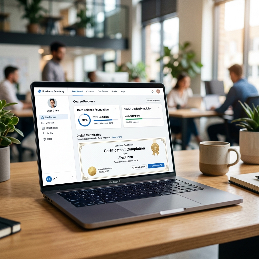 Tecnología educativa de última generación con modalidad 100% online, presencial o mixta. Validación QR instantánea de certificados.